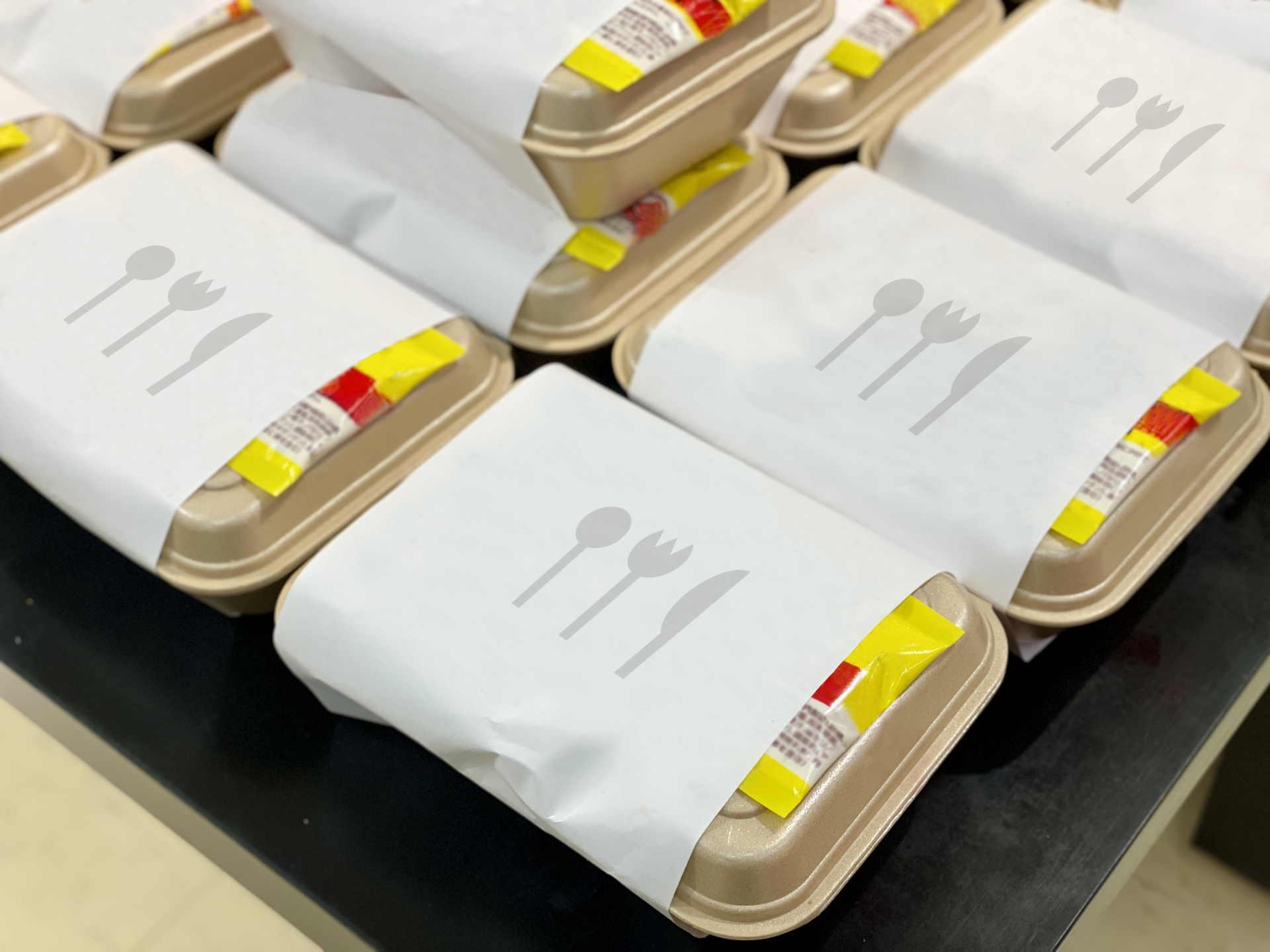 弁当パッケージは、同じ種類でも形や厚みが異なる場合があります。背の低いものを上に重ねる、高さが揃ったものをまとめて並べる、凸凹のあるパッケージは端に寄せるなど、向きや組み合わせを工夫することで、限られたスペースを効率的に使えます。また、同じサイズのパッケージは横に並べるより縦に並べた方が取り出しやすくなるケースもあります。
